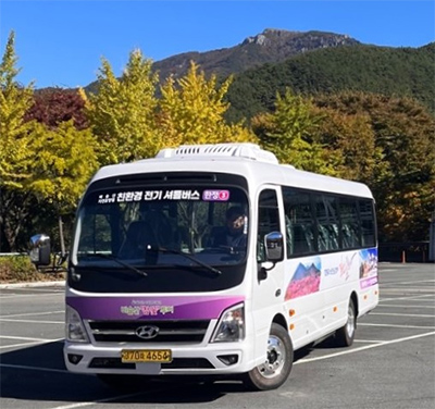 • 비슬산투어관광버스는 비슬산 천혜의 자연경관을 보호하며 관광하기 위한 친환경 전기버스입니다.